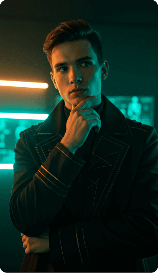 Orion utiliza tecnologia de ponta para transformar seus roteiros e posicionamento em vídeos com visual editorial e aparência realista.